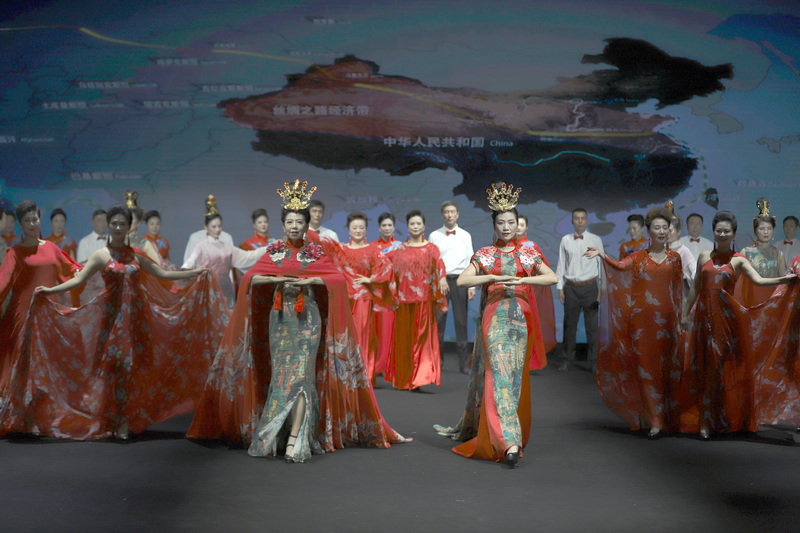 华服展示结束后,江西老年大学的“丽人行”中老年时装表演队为江服师生表演了《丝路畅想》,再一次点燃全场。