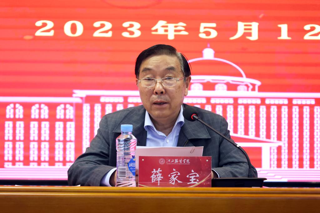 会上,薛家宝充分肯定了本次主题教育专题读书班的学习成效,指出本次读书班组织有力,主题突出,内容丰富,形式多样,交流研讨深入,强化了理论武装,补足了精神之钙;深化了思想认识,提高了政治站位;加强了党性锻炼,拓展了思维视野;增强了发展信心,坚定了必胜信念,取得良好学习成效。他强调,继续深入推进我校学习贯彻习近平新时代中国特色社会主义思想主题教育还需要从四个方面下功夫:一要在持续抓学习上下功夫。按照把学习贯彻始终的要求,持续抓好理论学习;二要在持续深入调研上下功夫。各级组织要把深入基层调查研究作为开展这次主题教育的重点,围绕贯彻落实习近平总书记重要讲话和指示批示精神,围绕落实党中央和省委、省政府决策部署,紧密结合各项重点工作,深入开展调研;三要在推进专项整治上下功夫。要发扬刀刃向内的自我革命精神,坚持边学习、边对照、边检视、边整改,奔着问题去、带着问题学、对着问题改,把问题整改贯穿主题教育始终,确保问题一件一件整改清零,以整改的实际成效推动各项工作落实落地,让师生切实感受到解决问题的实际成效;四要持续在压实责任上下功夫。学校各级党组织负责同志要进一步提高政治站位,切实把工作要求、工作标准、工作责任传递下去,把工作进展情况、实际问题、特色亮点和意见建议收集上来,心往一块想、劲往一处使,同心同向同行,推动主题教育各项工作落地见效。薛家宝勉励全体学员要把这次读书班的学习成果转化为履职尽责的实际行动,为推进学校各项工作高质量发展凝心聚力,为奋力开创特色鲜明的高水平应用型大学建设而努力奋斗。