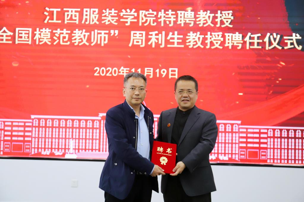 授聘仪式上,理事长涂顺强为周利生教授颁发了聘书,并代表江西服装学院师生向周利生教授表达了热烈的欢迎,他说周利生的到来,对促进江西服装学院思想政治教育的发展,提升科研能力,提高教学质量,起到了很好地推动作用。