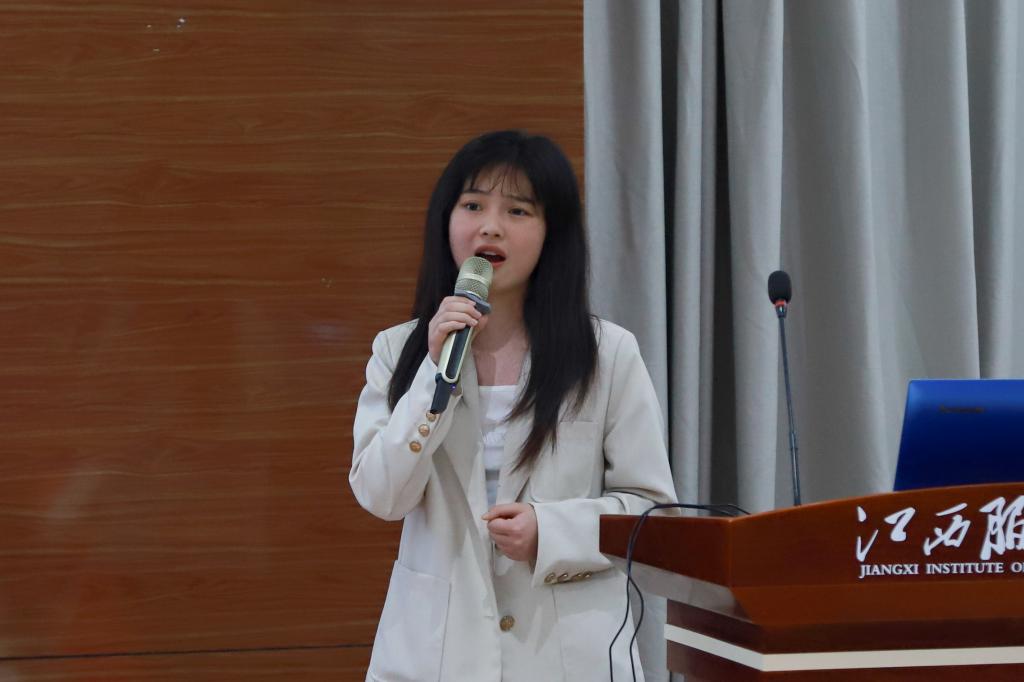 活动伊始,大学生宣讲团成员高仪同学以《百灵鸟不要飞出去》为主题进行宣讲,她用优美的歌声和精彩的宣讲告诉我们,作为新时代的赣鄱学子,要继承和弘扬井冈山精神,让井冈山精神发射出新的时代光芒。