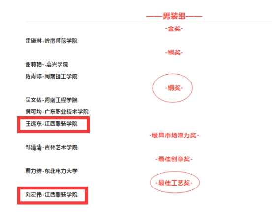 近日,由中国纺织服装教育学会、石狮市人民政府举办的第十届“石狮杯”全国高校毕业生服装设计大赛决赛暨颁奖典礼在石狮服装城艺术展览中心隆重举行。我校学生陈景荣获女装组银奖;王远东同学荣获男装组铜奖;刘宏伟同学荣获男装组最佳工艺奖。