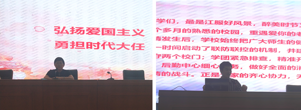 娄英英院长对同学们再次踏入校门,再聚江服大家庭表示欢迎。她指出,开学战疫思政一课主要通过共同聆听援鄂英雄的抗议故事,重温感受火线锤炼的抗疫精神来加强疫情防控知识教育,引导学生正确理性看待疫情,增强自我防范意识和防护能力,学会在困难和磨练中成长。