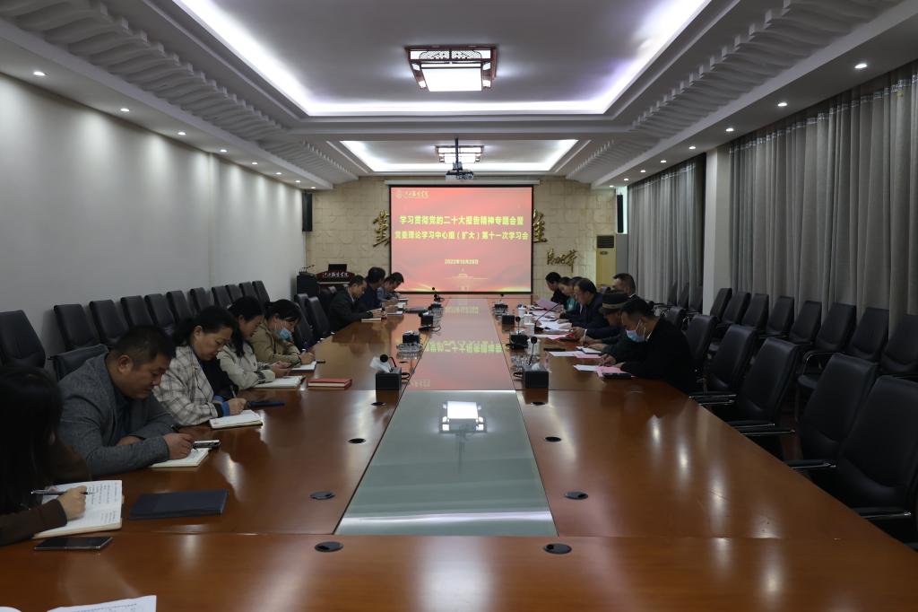 新闻中心讯(文/龙瑞行 图/万强)10月28日下午,我校在行政楼二楼会议室召开学习贯彻党的二十大报告精神专题会暨党委理论学习中心组(扩大)第十一次学习会,安排部署学习宣传贯彻落实工作。校党委书记陈付龙主持会议并讲话,校党委委员、各学院党总支书记、各机关支部书记参加会议。