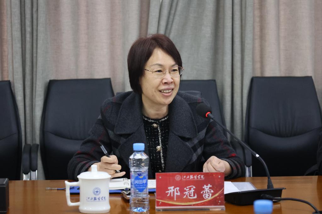 中纺政研会邢冠蕾会长对江西服装学院在思想政治教育、教育教学等各方面取得的成绩给予了高度评价,她指出江西服装学院坚守办学宗旨和特色办学,为纺织服装行业培养了众多优秀人才,给全国的服装行业做出了巨大的贡献,学校加强与各地服装产业集群的联系,大量毕业生在集群地沉淀下来,助推纺织服装产业发展。邢冠蕾会长表示中纺政研会将在党建和思想政治教育、校企合作、产学研合作、学术科研等方面为学校搭建更多平台,期待与学校开展多方面深层次的合作。
