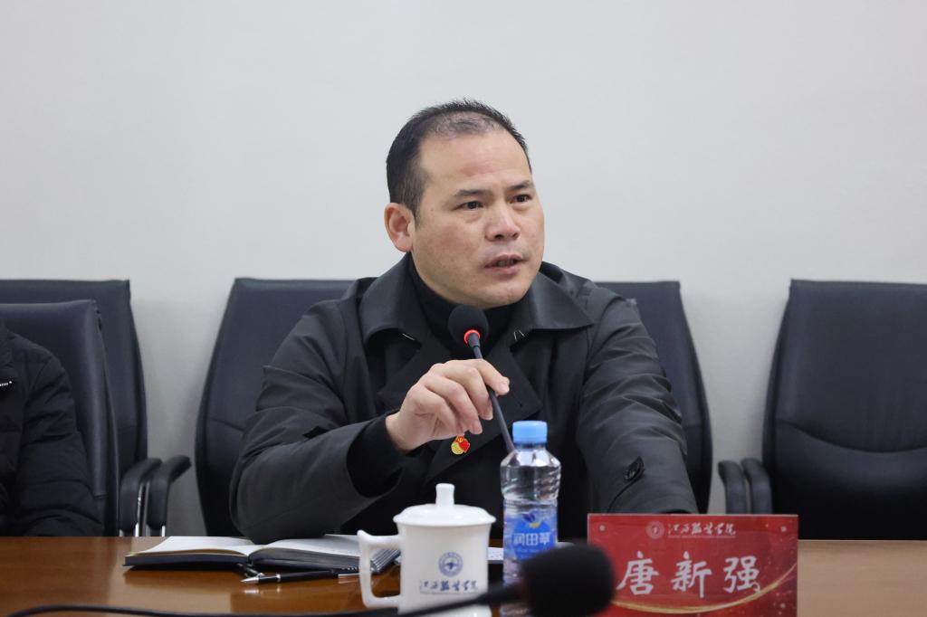 校党委副书记唐新强作了题为《紧跟时代发展进路 引领思想政治工作高质量发展》的工作汇报,介绍了我校党建思政基本情况,从“坚定办学方向,强化‘公益性’办学使命;加强党的领导,强化‘大思政’体系建设;聚焦思想引领,强化‘价值观’主题教育;加强阵地建设,强化‘微思政’浸润作用;注重队伍建设,强化‘新时代’育人要求;拓宽育人途径, 强化‘N育人’思政特色” “六个强化”介绍了学校党建和思想政治工作主要做法。
