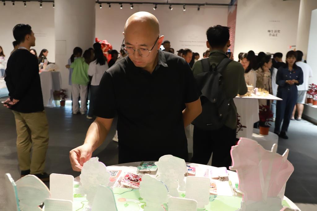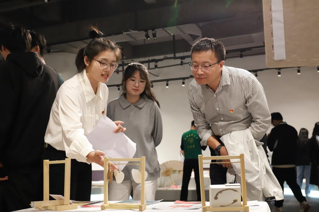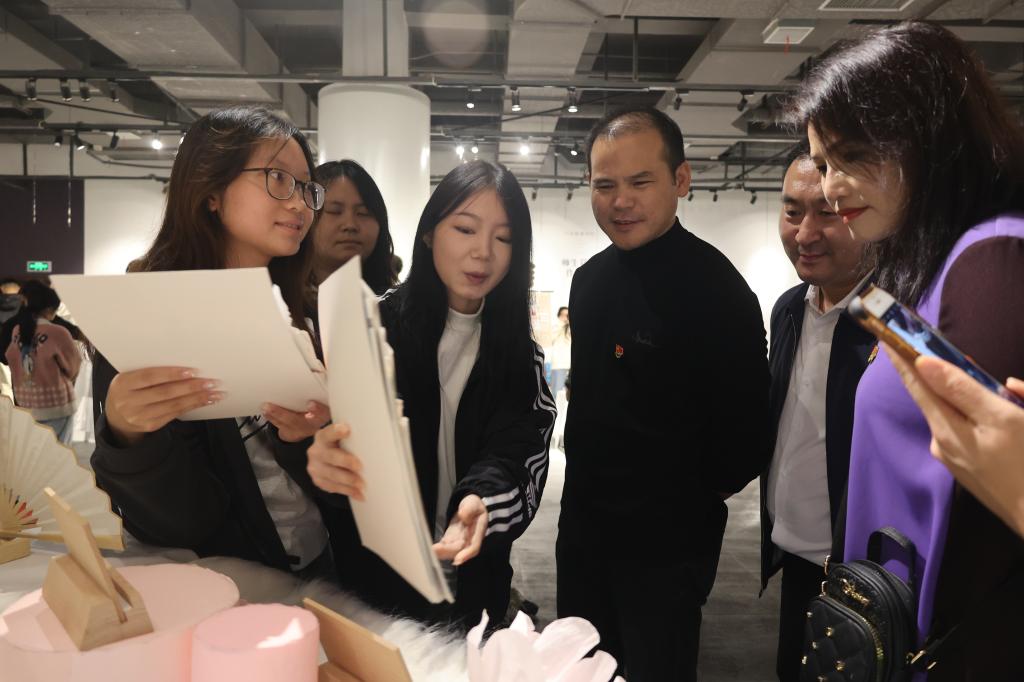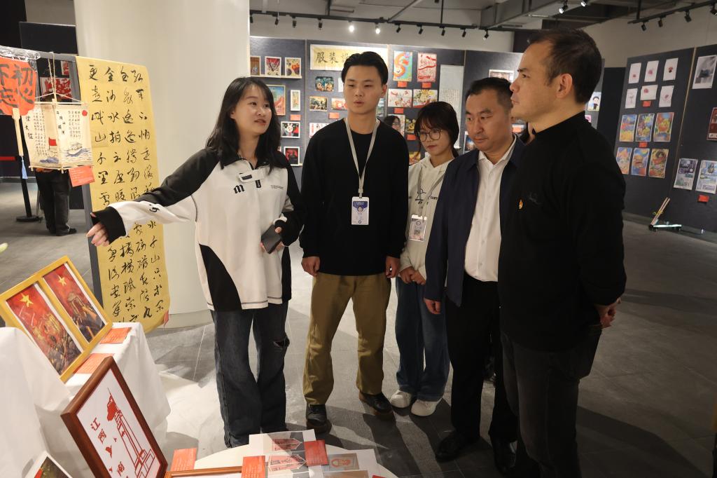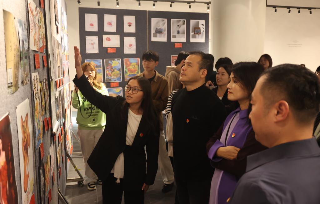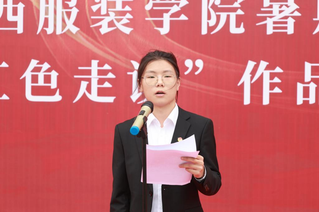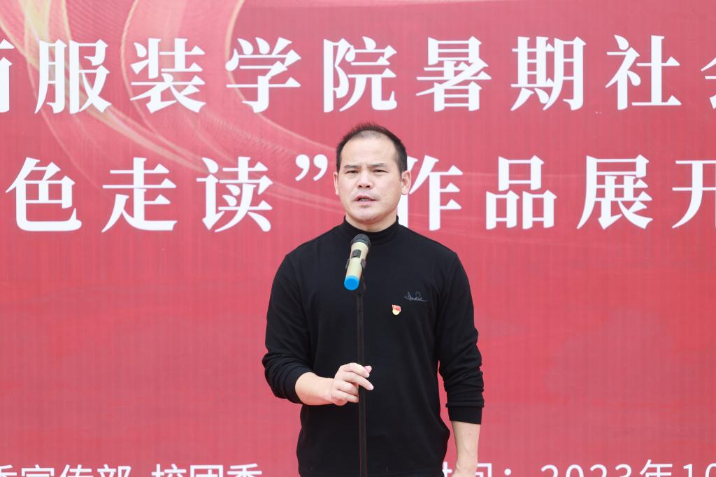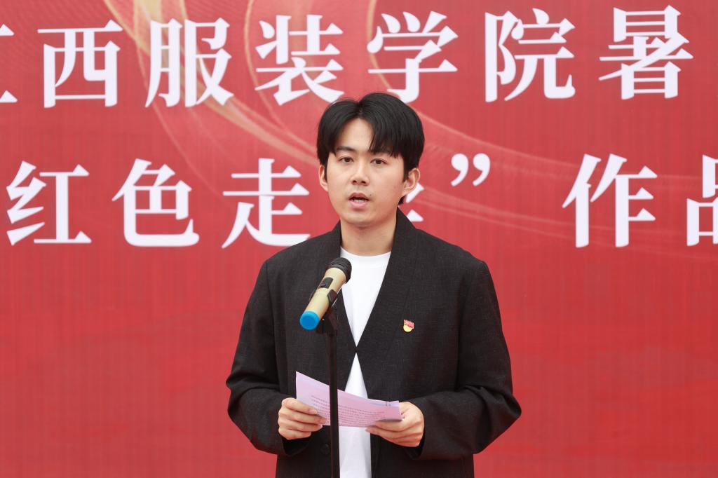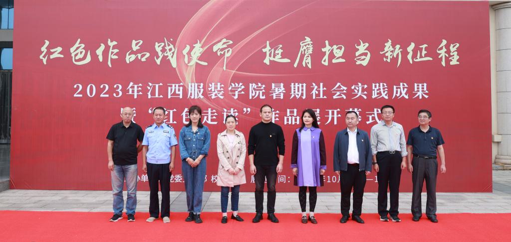 党委副书记唐新强宣布江西服装学院暑期社会实践成果暨“红色走读”作品展开幕。与会嘉宾及师生代表移步展厅参观了展览。