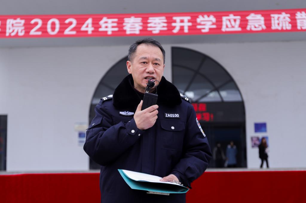 新闻中心讯(文/万强 图/黄梓翔 周瑞宝 实习记者 刘慧娟 申宇晨)为切实做好学校的安全工作,进一步增强师生突发情况下的应急逃生能力,确保师生的生命安全,真正掌握在地震、自然灾害和火灾中迅速正确的逃生方法,提高师生抵御和应对地震、自然灾害和火灾等突发事故的应变能力,2月27日下午,江西服装学院2024年春季开学应急疏散逃生演练在主教学楼顺利举行。校党委副书记、副校长李宝君出席活动并点评,党委宣传部、保卫处、学工处、后勤保障处等相关职能部门,全体辅导员、各寝室楼栋长、寝室长共计2000余人参加演练。