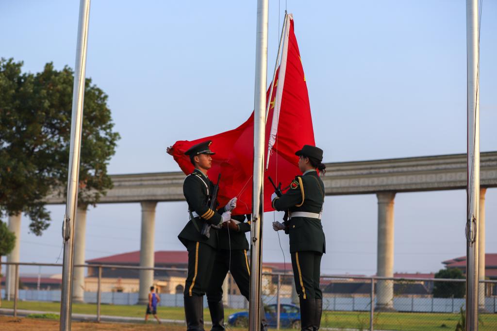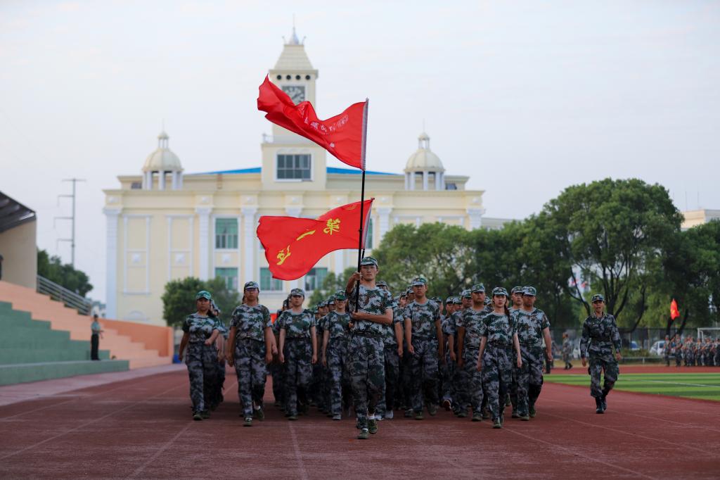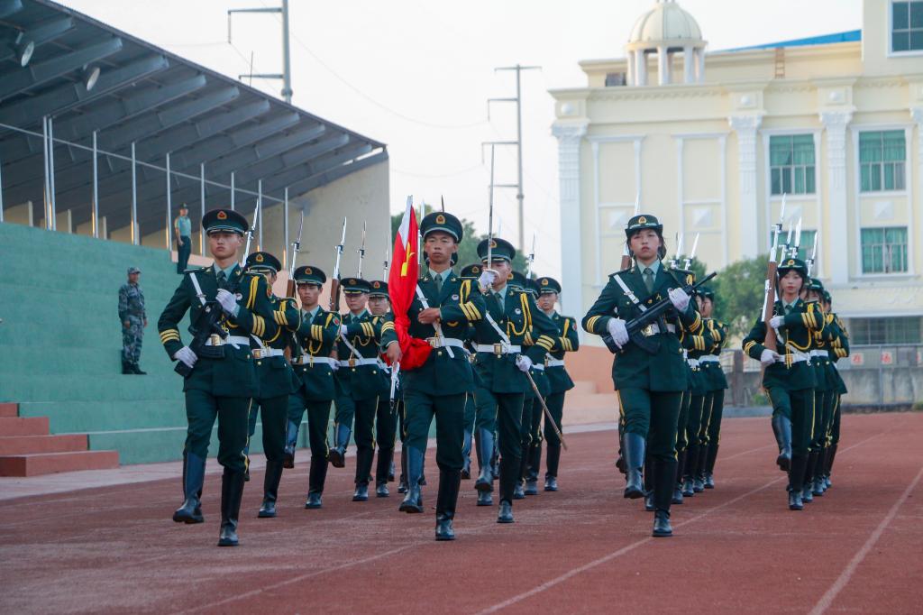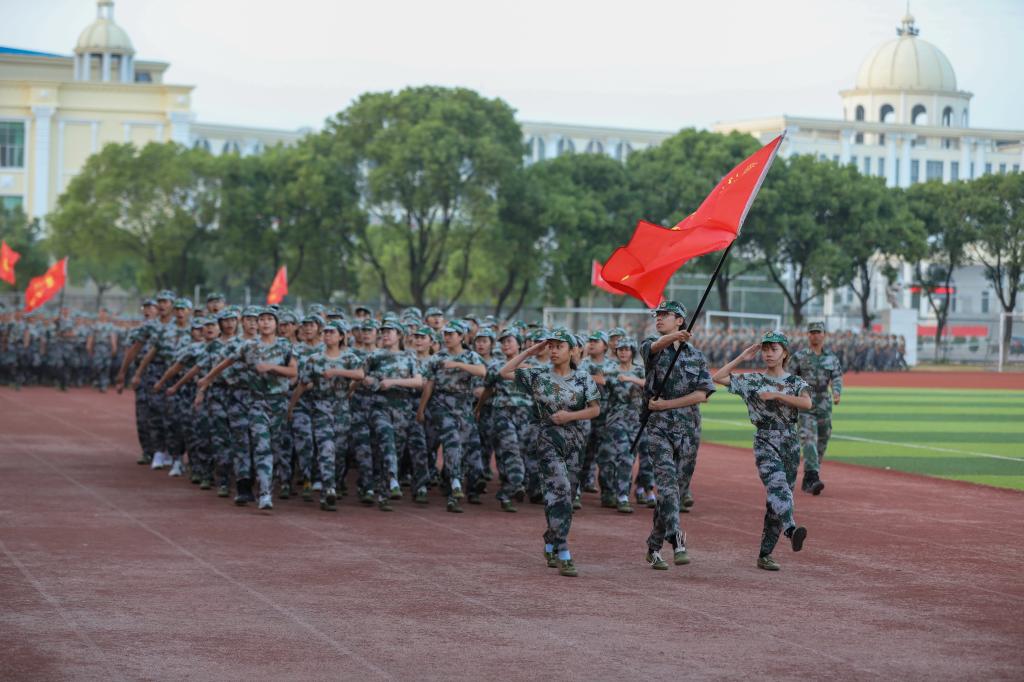 伴随着动人心魄、催人奋进的军歌,走在整个方阵最前面的是新生国旗护卫队,“以青春之名,护国旗之威”,他们个个倾心国防绿,热爱五星红旗,他们步伐整齐,精神抖擞,气宇轩昂,意气风发,展现了江服新生开拓创新,勇往直前的良好精神风貌。