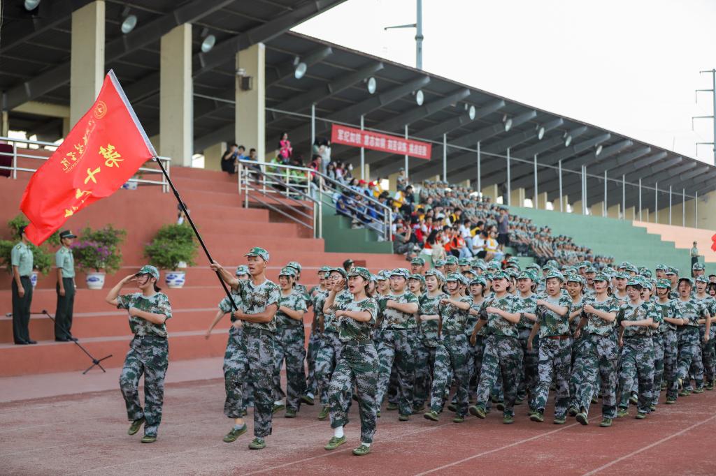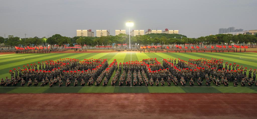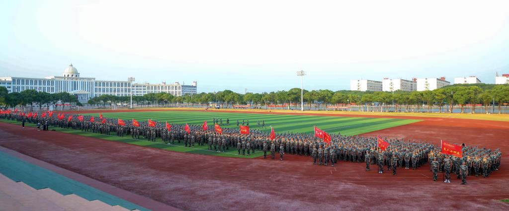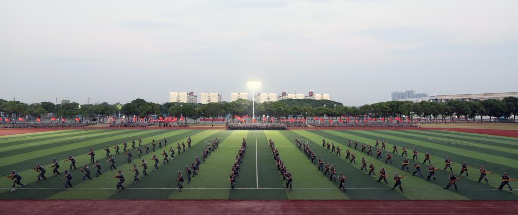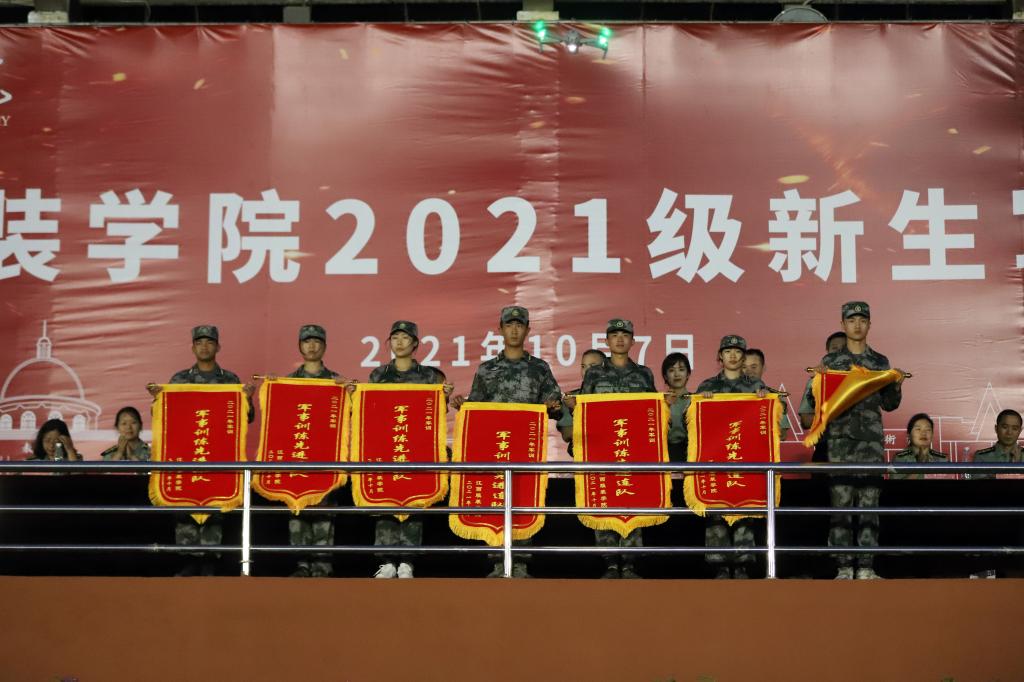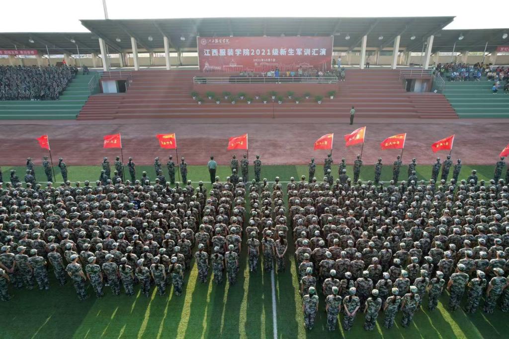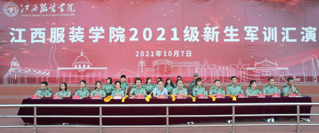 10月7日下午,江西服装学院2021级新生军训汇报表演暨总结表彰大会在田径运动场举行。校党委书记陈付龙、党委副书记唐新强出席活动,相关职能部门、各学院党总支负责同志、新生年级辅导员和全体2021级学生参加了汇演。