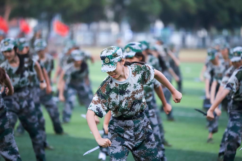 队列操、匕首操、刺杀操、图案操等科目表演轮番精彩上阵。队列操方阵步伐矫健、豪气冲天;匕首操阵列英姿飒爽、动作整齐划一,喊出了巾帼英雄的豪情壮志;刺杀方阵霸气勇猛,热血沸腾,杀声震耳欲聋;图案操方阵阵容强大,训练有素,气势如虹。整场汇演节奏紧促,激动人心,现场高潮迭起,掌声如雷。参训学员们以饱满的热情、激昂的士气、百倍的信心和扎实的作风,展示了我校学子良好的精神风貌和昂扬的青春斗志,为本次军训交上了一份优异的答卷!