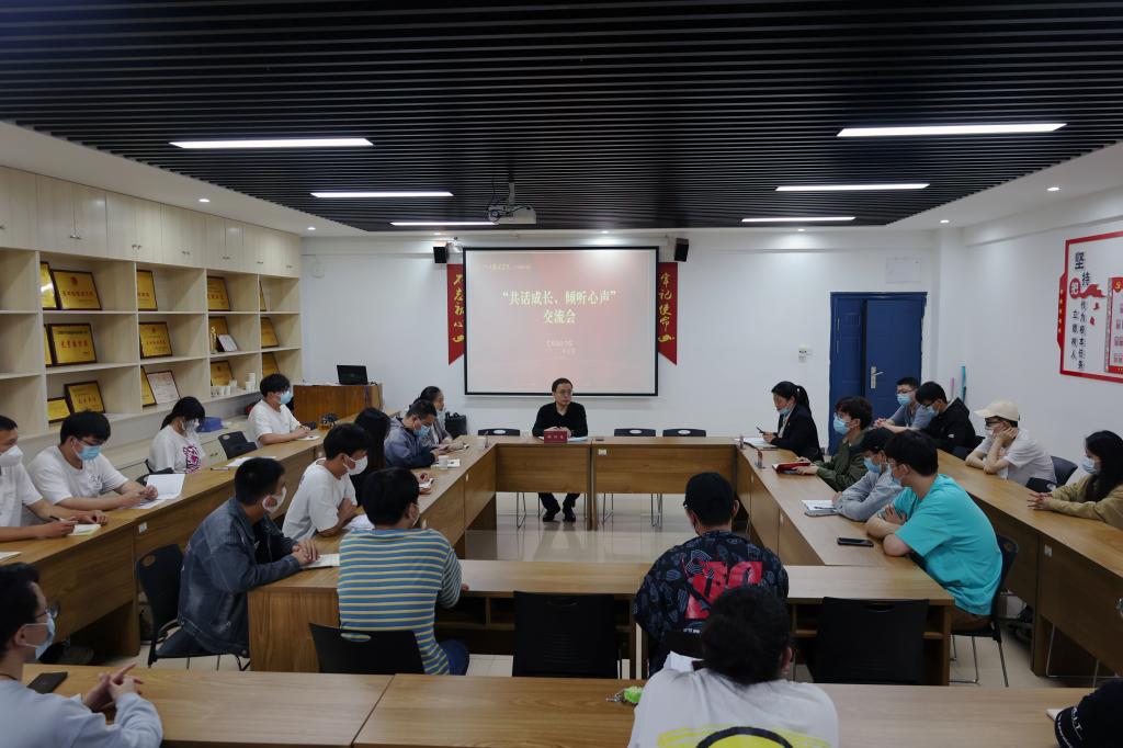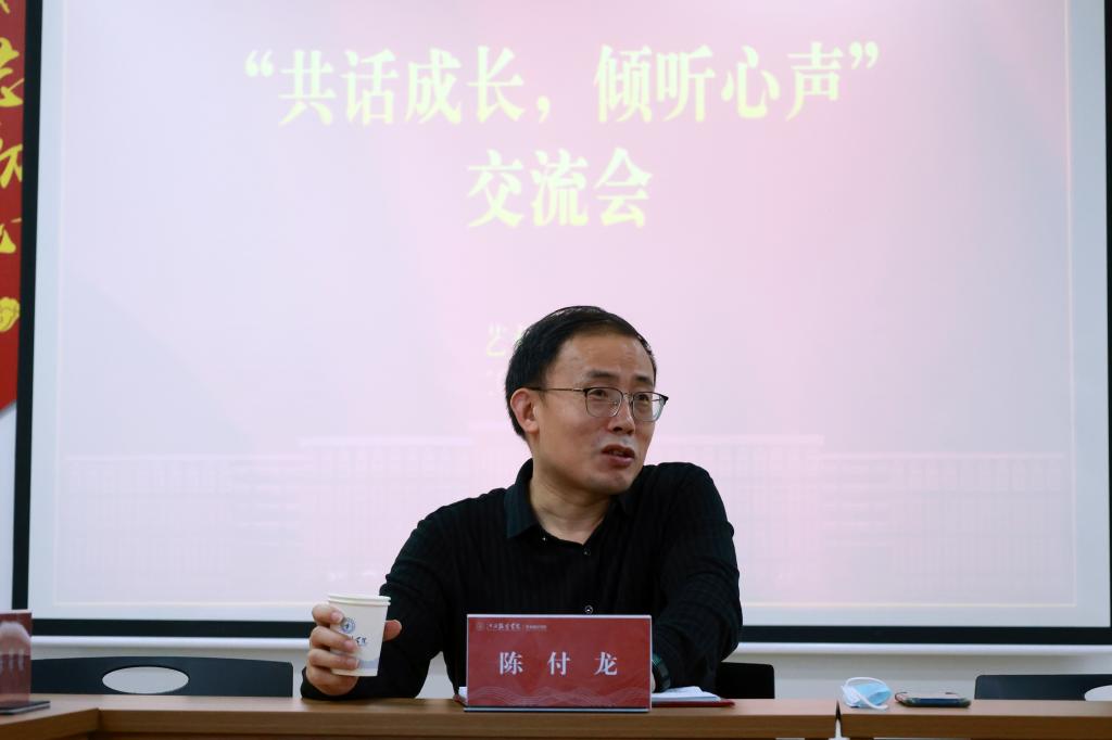 课后,陈付龙书记参加了艺术设计学院“共话成长,倾听心声”交流会,通过与学生面对面的交流,倾听学生的心声,与学生“心贴心”共话成长。在轻松愉快的氛围中,陈书记给同学们分享了自己的大学生活,与同学们深入交流了学习生活中的收获与感悟。参会的毕业生代表、学生干部代表踊跃发言,分别就他们的学习、生活状况,以及对学校工作的建议进行探讨。陈付龙书记就同学们在专业学习、考研升学、参军入伍、就业创业等遇到的困惑与问题给予耐心解答。陈书记指出,无论是选择考研还是就业,首先要明确自己的目标,并为之不懈努力;年轻人要有朝气、有志气、有斗志,要不断加强学习,利用好现有条件和政策,积极参与社会实践,抓住机遇,做好选择。疫情当前,陈付龙书记对同学们在学校疫情防控期间给予的理解与配合表示感谢,对学校取得的疫情防控工作成效表示欣慰,他叮嘱同学们一定要注意防护,保持良好健康的生活习惯。