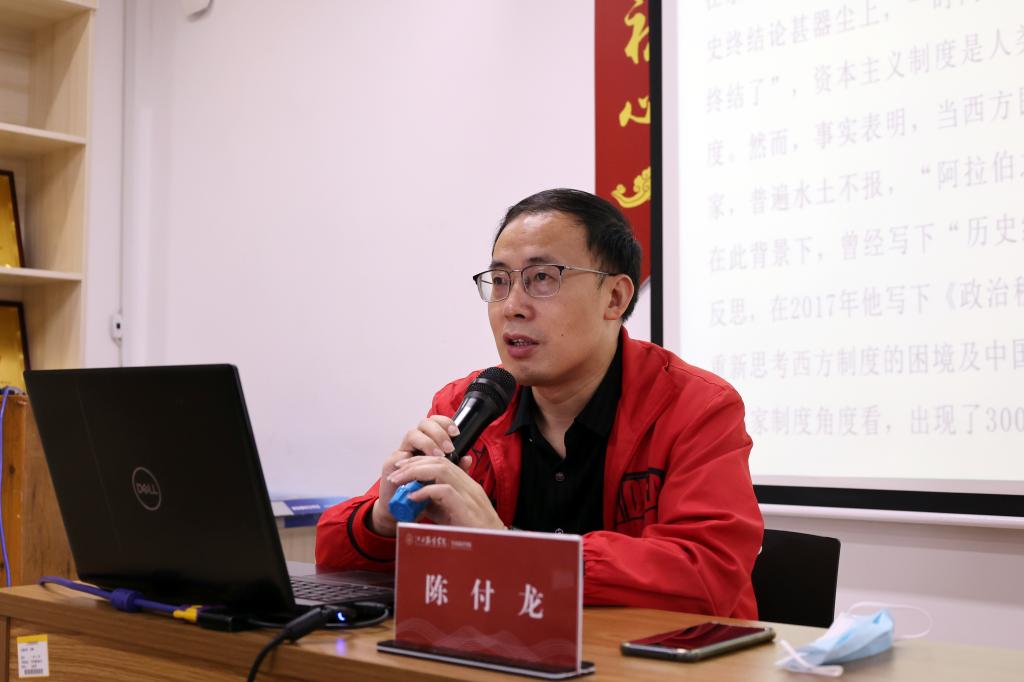 下午14:50,陈付龙书记和同学们一起进入腾讯会议,以普通学生的身份随听了一堂线上思政课。课堂上,他聚精会神,认真记录课程要点,积极参与课堂互动交流;课后,陈付龙书记和师生进行了深入的交流与探讨。