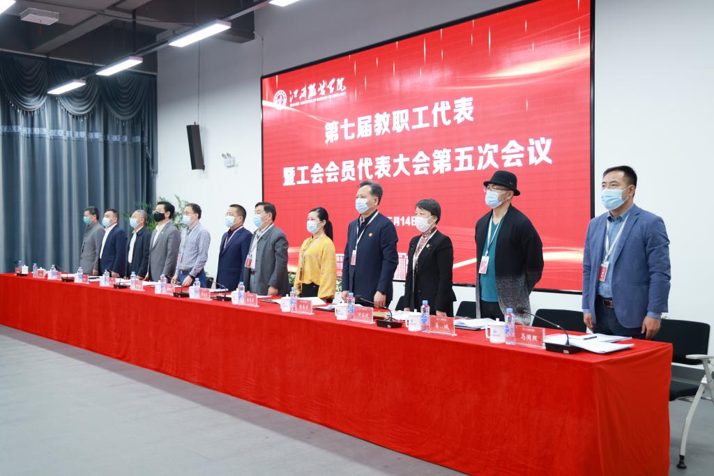 下午16时40分,江西服装学院七届五次教职工代表大会闭幕。大会在雄壮的国际歌声中圆满完成各项议程。