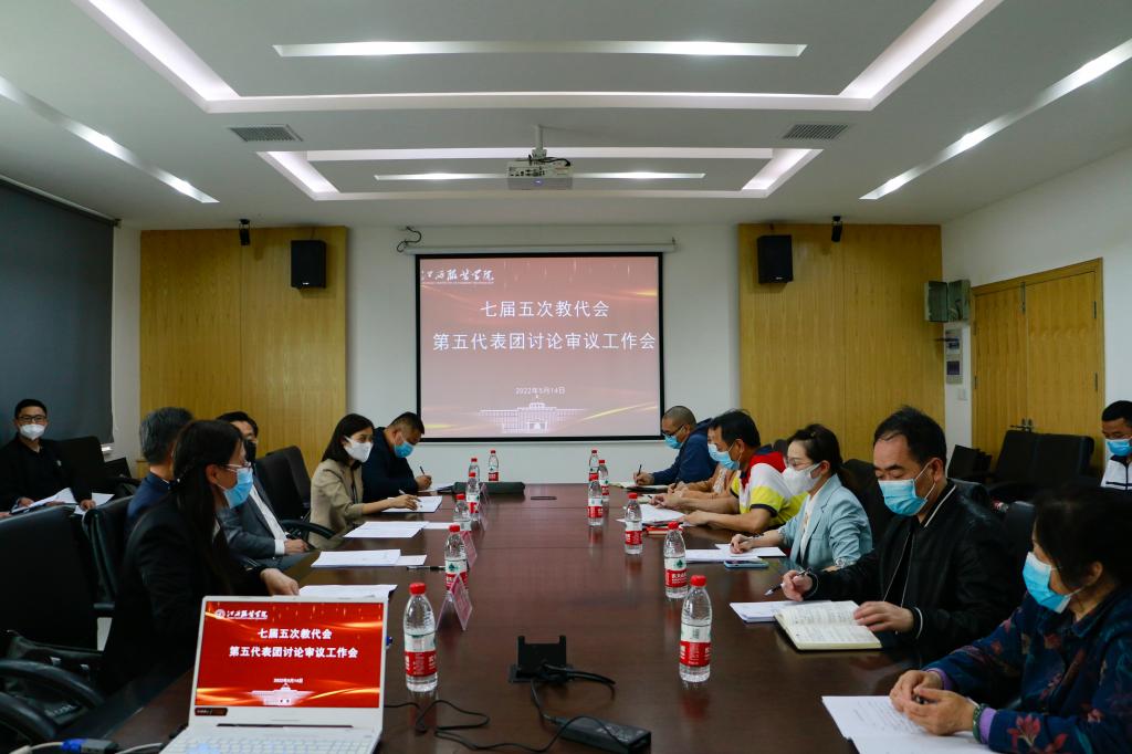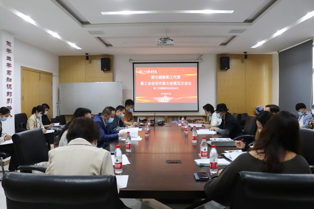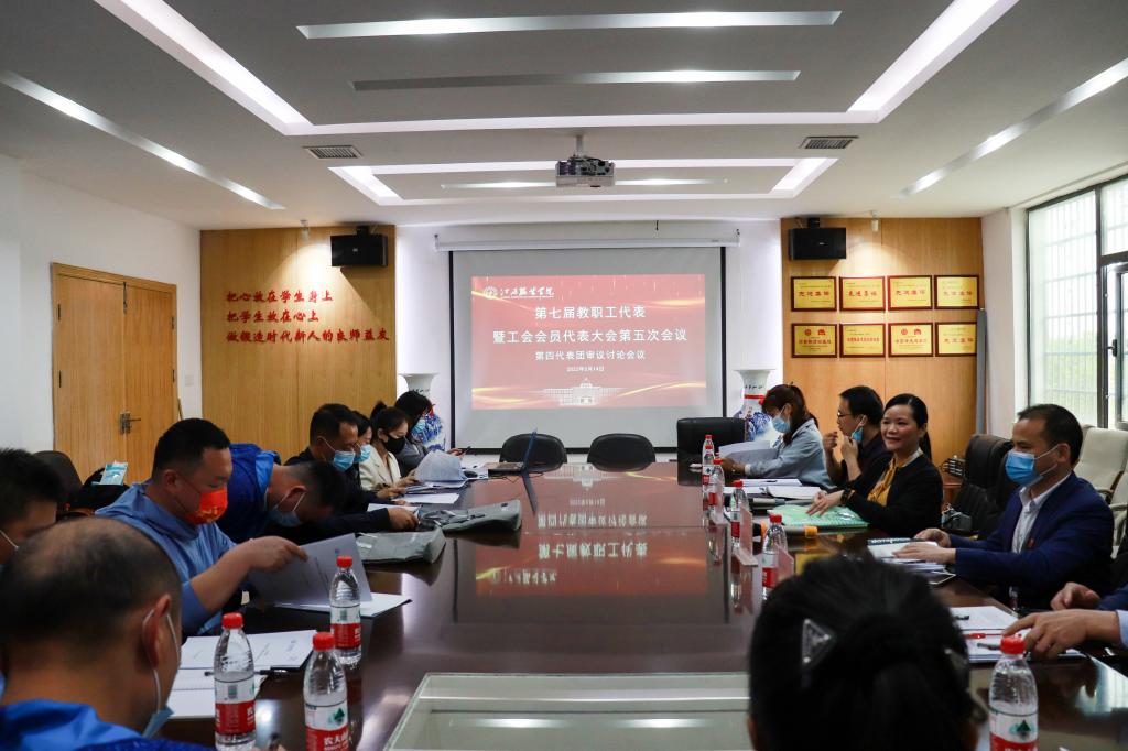 5月14日,我校隆重召开第七届教职工代表暨工会会员代表大会第五次会议。回顾总结学校2021年建设发展成果,共商2022年发展大计。本次大会以线上线下视频会议形式举行。涂顺强、薛家宝、陈付龙、涂燕萍等校领导及优秀教职工代表、列席代表在图书馆三楼报告厅主会场,其他七个教职工代表团分别在分会场参加会议。