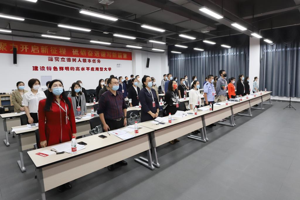 陈付龙代表校党委,就做好今年乃至今后一段时期的工作,提出三点意见:一是以高站位抢抓发展机遇,致力形成办学治校的新形态;二是以高标准提升内涵建设,致力形成优质发展的新形态;三是以高效率狠抓工作落实,致力形成实干兴校的新形态。