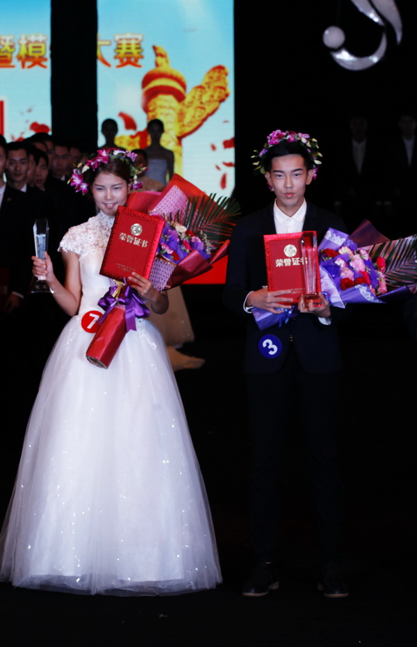 在11月20日进行的润华奖模特总决赛中50名男女模特经过活力装秀、泳装秀、晚礼服秀三个环节的激烈角逐,为现场的观众带来了一场美轮美奂的江服时尚盛典年终大秀,最终由来自服装行业、时尚界、媒体圈的7位资深专业评审共同组成的豪华评审团评出了冠、亚、季军。来自14级表演专科班郝云鹏和15级模特专科班李林分获模特大赛男、女冠军。