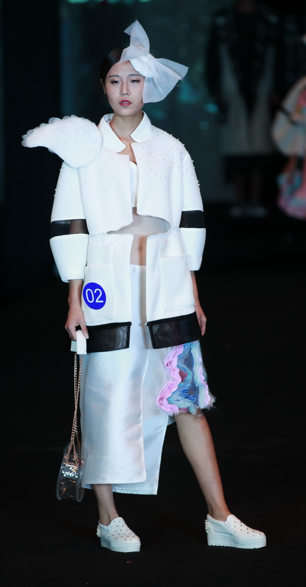 服装报讯(明海 记者/李凡通 实习记者/杜佳琪 江倩 ) 11月21日下午2点,江西服装学院一年一度的大型赛事润华奖服装设计暨模特大赛进入最后的比拼。最终,来自服装工程分院12服工本科实验班宋晓敏、姚芳设计的服装成衣作品《戏水鸳鸯》获得本届润华奖服装设计大赛金奖。来自14表演专科班郝云鹏和15模特专科班李林分获模特大赛男、女冠军。