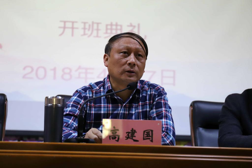 校党委副书记高建国作动员讲话。他指出,组织入党积极分子参加党校培训学习,体现了党组织对青年入党积极分子的重视、关心,并贯彻“十九大精神”的要求,组织培训是《党章》党员发展工作的规定和要求,是入党积极分子自身理论学习、思想锻炼的现实需求,是增强入党积极分子思想觉悟和党性觉悟的重要措施。高建国副书记对培训班的学员们提出了三点要求:要端正学习态度,提高学习认识,在党课学习上不能局限于培训课上的内容,而应该发挥主观能动性,利用好课余时间,在课下从更多方面了解关于党的内容,加深自己对党的联系与感情;要牢记使命担当,发挥积极分子的表率作用,通过学习真正认识到党在新时代的使命,为以后投身社会主义伟大事业打基础;为学校迎评促建工作打造软实力,不断提高文明素养,展现积极分子的理想追求,体现江服学子的精神风貌。