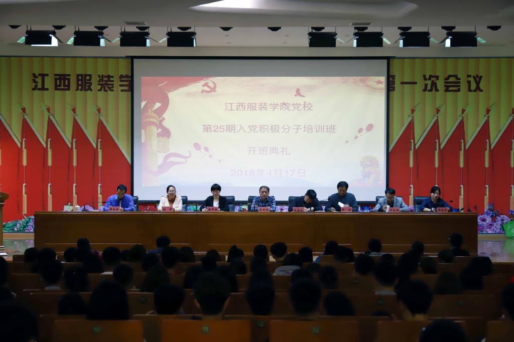 服装报讯(实习记者 涂尧 摄影/万强)4月17日下午,我校党委党校第25期入党积极分子培训班开班典礼在思贤楼三楼报告厅举行。校党委副书记高建国出席典礼并讲话,党委委员、工作部部长彭波,党委委员、学工部(处)部(处)长张建荣,各学院党总支(副)书记、各学院学生党支部书记和组织员,以及第25期入党积极分子培训班全体学员参加了开班典礼。校党委委员、组织部部长陈翠娥主持了开班典礼。