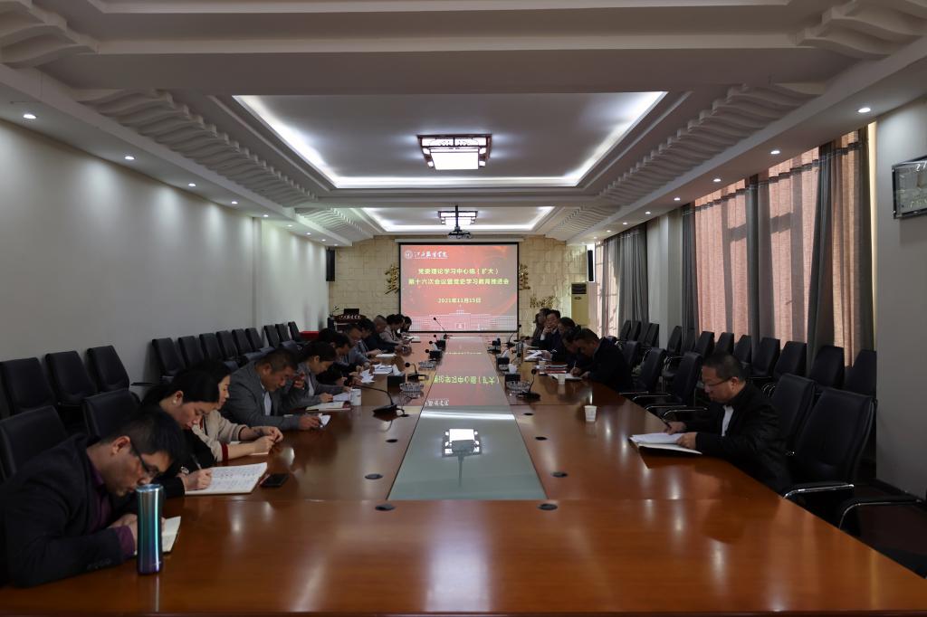 (新闻中心讯)11月15日下午,我校在行政楼二楼会议室召开党委理论学习中心组(扩大)第十六次会议暨党史学习教育推进会。党史学习教育领导小组以及办公室全体成员,各党总支书记(副书记)、机关支部书记参加了会议。会议由校党委书记陈付龙主持。