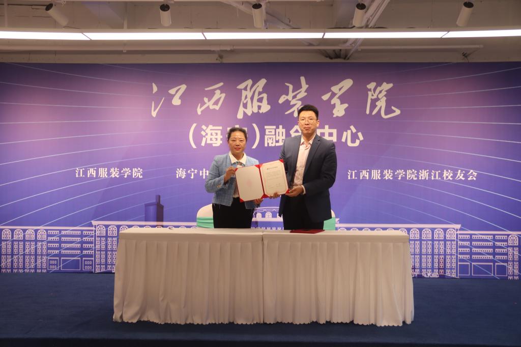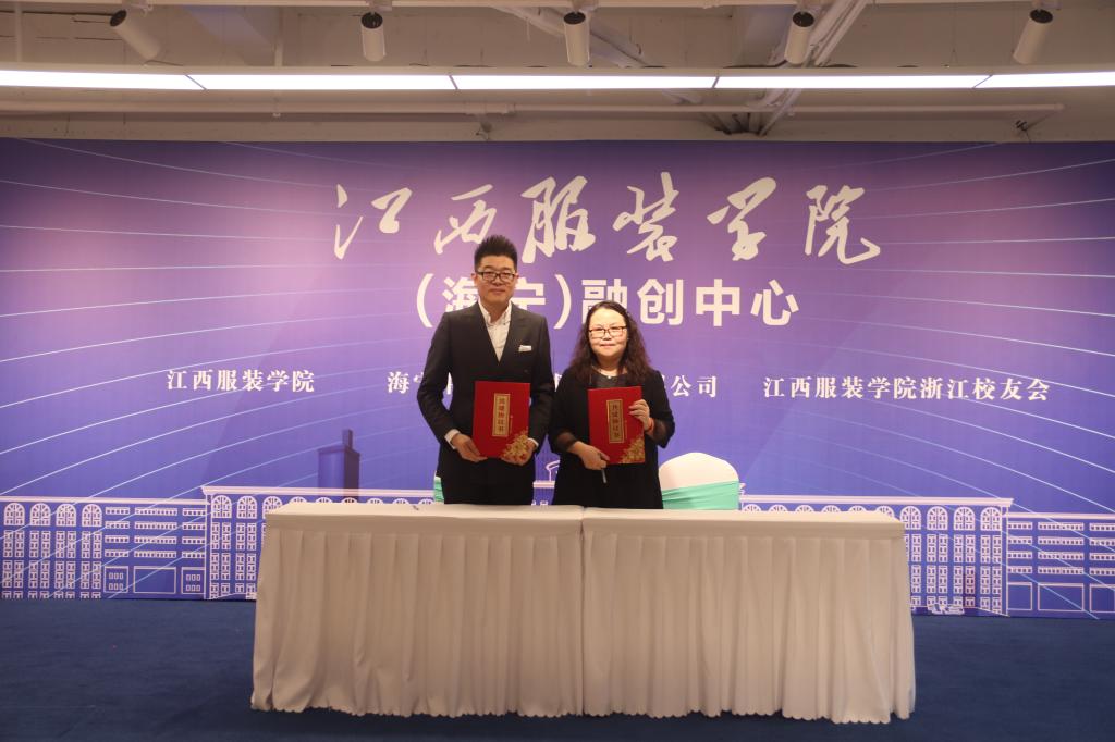 随着江西服装学院校长薛家宝宣布“江西服装学院(海宁)融创中心”正式启动。现场响起了热烈的掌声和欢呼声,标志着江西服装学院与海宁市在双创教育实践和产业集群的融合与合作正式开启新的征程。启动仪式上还进行了江西服装学院“双创实践基地”授牌及“江西服装学院浙江省校友会海宁分会”的揭牌仪式。