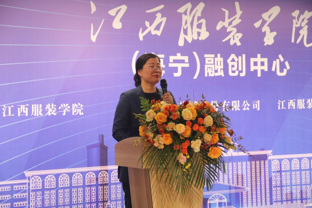 江西服装学院校长助理马国照致开场辞,介绍了我校三院制人才培养方式,表示学校对海宁融创中心寄予厚望,希望海宁融创中心能够成为众创人才服务的平台、产业校友资源的平台、企业人才培训的平台和创新成果转化的平台,借助海宁形成时尚产业资源优势,提升我校应用型人才培养质量,不断提升我校社会服务能力,为促进海宁时尚产业集群高质量发展贡献力量。共同成就梦想、织就辉煌。