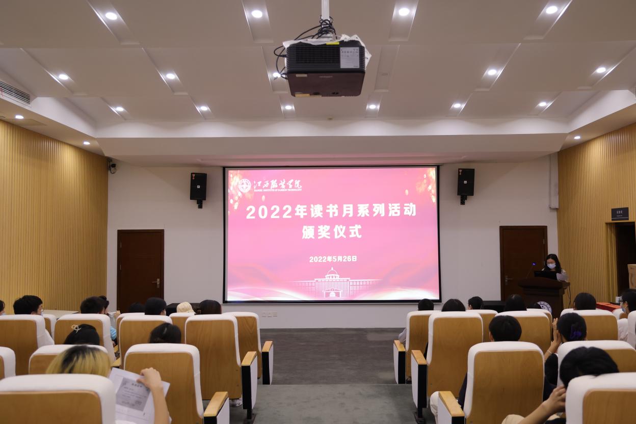 为表彰在读书月活动中获奖的老师、同学、班级,图书馆于5月26日下午和5月27日下午13:00在三楼视频视听厅举行颁奖仪式。仪式由图书馆副馆长邓丽霞主持。邓副馆长分享了自己的阅读经验和体会,深入浅出阐释了为什么要读书、读书的目的以及怎样读书。她引用习近平总书记的“把学习作为一种追求、一种爱好、一种健康的生活方式,做到好学乐学”的重要讲话,勉励广大学生将读书作为精神存在和思想升华的必要方式,作为一种生活习惯和行动自觉,熟读精思,学以巧用,通过读书学习来锤炼品格、提升能力,为生命增加力度和厚度。刘莹代表受表彰学生作获奖感言,她表示通过参加读书月活动,开拓视野,获得更多文化知识和提高学习能力,将不辜负学校和老师们的辛勤培养,自觉肩负起实现中华民族伟大复兴中国梦的历史使命,争做新时代文明大学生。
