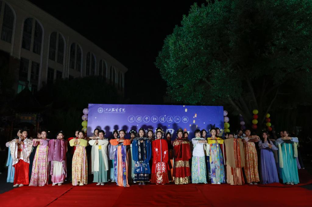新闻中心讯(校工会供稿)为弘扬传统文化习俗,喜迎中秋传统佳节。9月26日晚,由校工会、妇联主办,非遗工坊协会、孔子学院承办的“月圆中秋、情满江服”中秋师生系列游园活动在我校行政楼前观赏山水园林有序开展。校党委副书记、副校长、工会主席李宝君出席活动仪式,校工会、妇联等近千名师生以及教职工家属参与了系列游园活动。