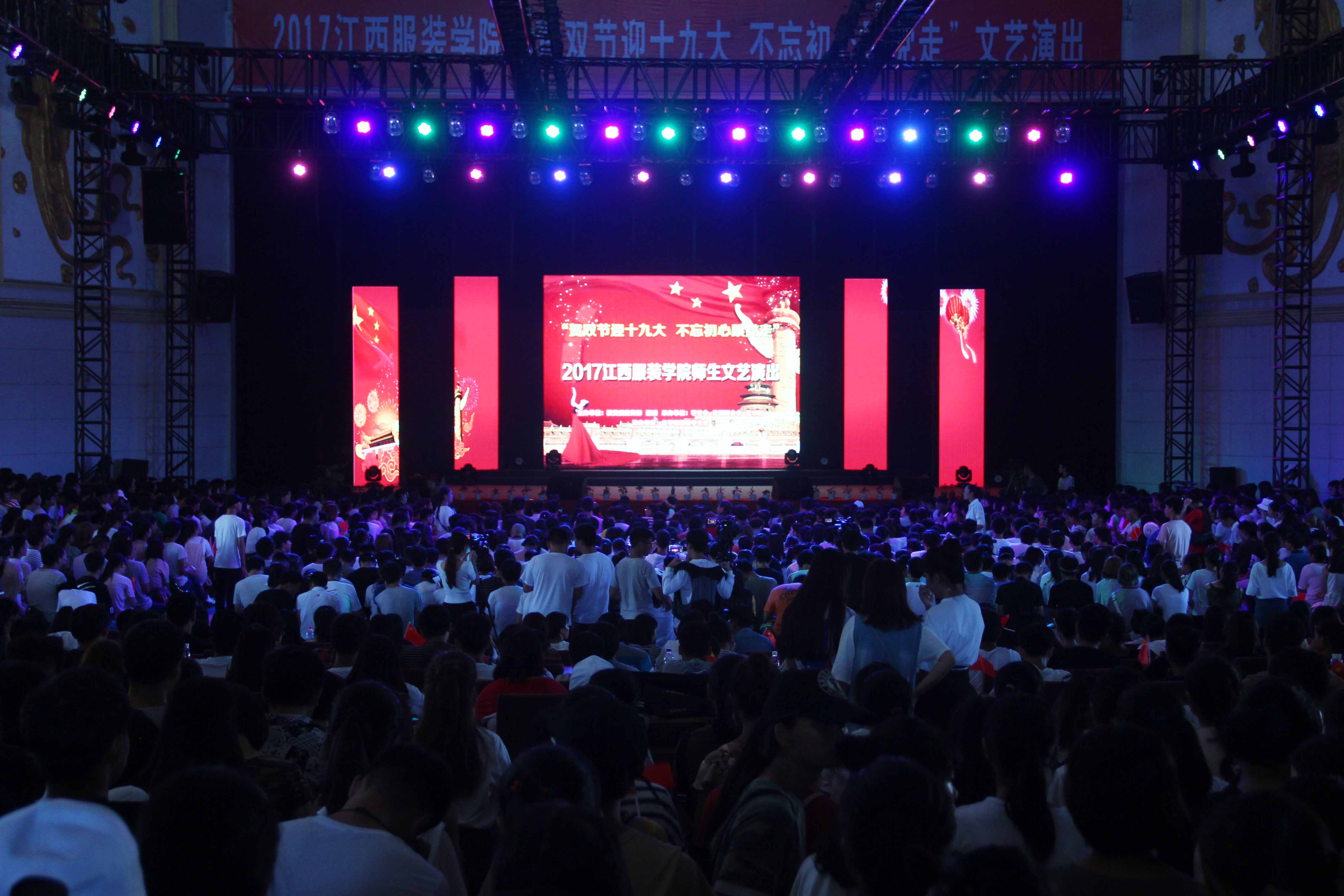 服装报讯(记者/廖智力 摄影/张柯邓 黎荣松) “盛世贺双节,花好人团圆;喜迎十九大,师生跟党走……”26日下午,“贺双节迎十九大,不忘初心跟党走”2017江西服装学院师生文艺演出在校霓裳宫举行。演员们用欢快的歌舞在党的十九大即将胜利召开和国庆中秋佳节即将来临之际,表达对党的无限忠诚、对祖国的挚爱和对美好生活的歌颂,凝聚起江服师生参与决胜全面建成小康社会,实现中华民族伟大复兴中国梦的满满正能量。