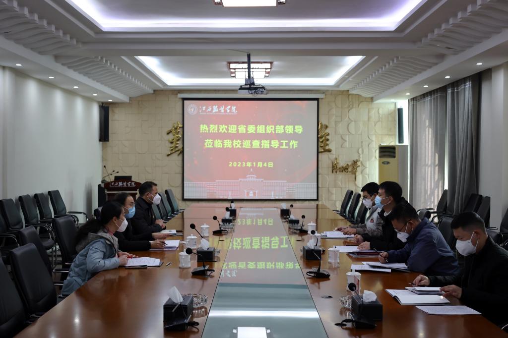 新闻中心讯(文/毛益剑 图/万强)为深入宣传贯彻党的二十大精神,加强和改进全省民办高校基层党建工作,2023年1月4日,省委组织部组织四处李文超主任一行四人莅临我校进行党建工作巡查调研。