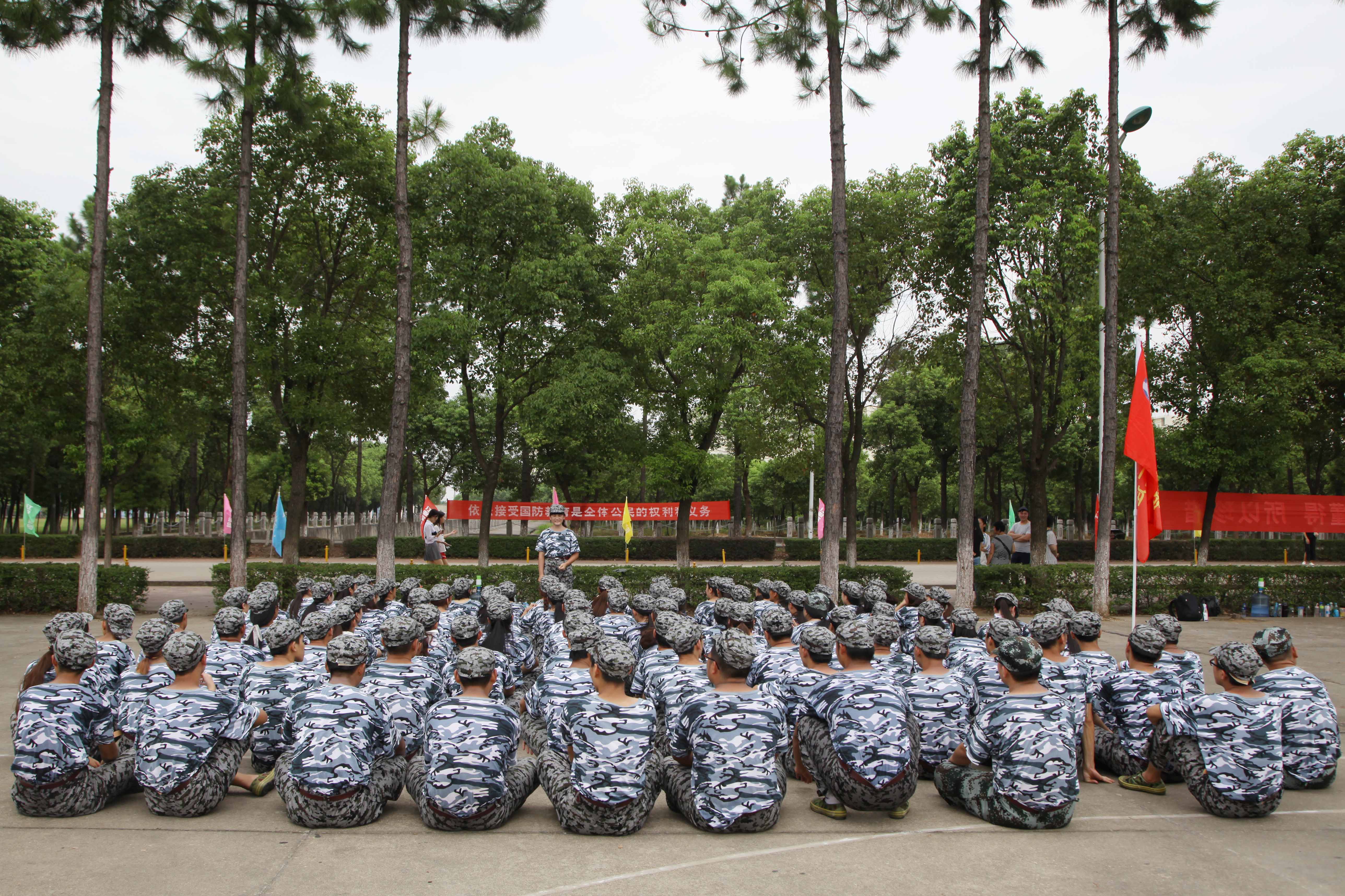 如果说学生是军训场上的主角,那教官们一定就是幕后导演。教官们通过在部队的学习和生活,队列动作早已和他们融为一体。严肃的表情,高标准的要求,可能会让人觉得教官们难以亲近。走过艺术八连,教官正在逐一修正学生原地摆臂的动作,嘴里的“一二”也没停过,整齐划一的动作是教官不厌其烦的一遍一遍的做示范,讲细节,喊口号才出来的成果。他们用沙哑的嗓子喊着口号,他们在烈日下训练,他们不善言辞,用行动诉说关怀和教导。那一瞬间,他们很温柔。