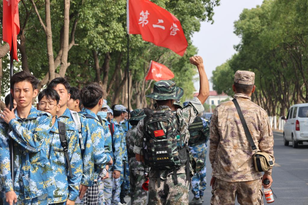 新闻中心讯(文字/人民武装部 胡康 图片/黄保值)“青春心向党,献礼二十大”。在全国上下热烈庆祝党的二十大胜利召开、深入学习贯彻党的二十大精神之际,为进一步学习贯彻二十大精神,厚植青年学生爱党爱国情怀,让红色基因代代相传。我校武装部组织学校军事爱好者俱乐部成员、2022级新生军训标兵等400余人开展了十四公里军事拉练活动,校党委副书记唐新强、人民武装部部长鲍鹏、军事体育教学部顾正勇老师等全程跟训。