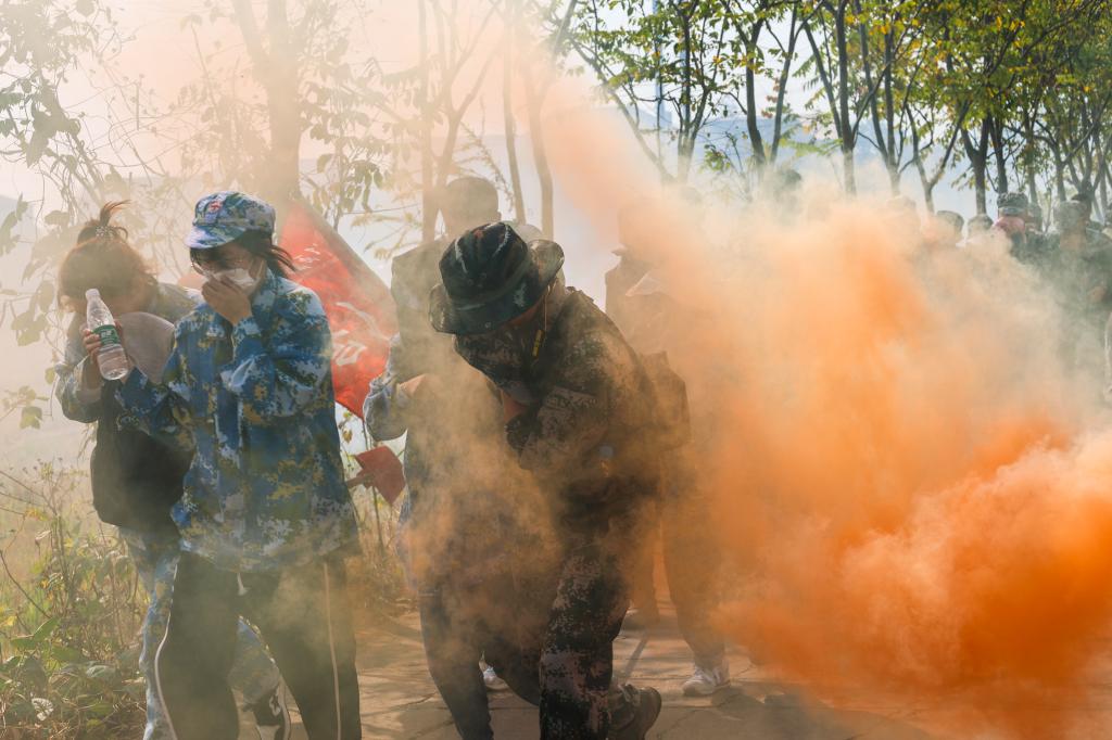 校武装在徒步行军过程当中开展了沉浸式军事实践教学,实践教学包括急行军、防化学武器保护、防空隐蔽、军事力量对抗、战斗投弹训练等。通过模拟战斗行动磨炼学生的意志、培养学生的爱国主义情怀和严明的组织纪律性。