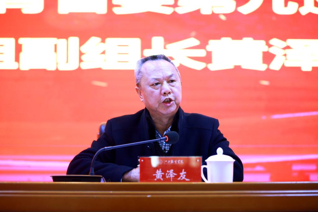 党史学习教育省委第九巡回指导组第六小组副组长黄泽友在讲话中充分肯定我校开展党史学习教育的做法和亮点以及取得的成效。他指出,自党史学习教育启动以来,我校党委高度重视,广大师生积极参与,既按照上级的要求,又结合学校的自身实际,规定动作达标,创新动作争优,取得了很好的学习效果。主要体现在几个方面:一是采取多种方式开展理论学习,加强理论武装,提高思想认识上有深度;二是针对不同群体党员特点开展宣讲宣传,落实全面有效覆盖有热度;三是着眼基层群众需求,抓好重点民生项目,开展党员志愿服务,为身边的行政办实事,办好事有温度;四是紧扣主题,开展好专题组织生活会,查找差距不足,抓好整改落实有厚度;五是把开展党史学习教育,从贯彻落实习近平总书记对江西工作的重要指示精神,做好中心工作有机结合起来,推动学校各项事业取得新进展,开创新局面有高度;六是党委履行主体责任,强化组织领导,落实组织到位,人员到位,责任到位,工作到位有梯度。黄泽友强调,党史学习教育工作虽然暂时告一段落,但党史学习实践活动永远在路上,巩固党史学习教育成果,践行初心使命,建功新时代是我们永远的追求。只有我们中国共产党人不忘初心,牢记使命,对标真理,对表实践,始终以中国人民的福祉为中国共产党的奋斗目标,才能得到广大劳动人民的拥护,我们的党才能永远的伟大,才能真正的领导中国人民取得中华民族伟大复兴的胜利。