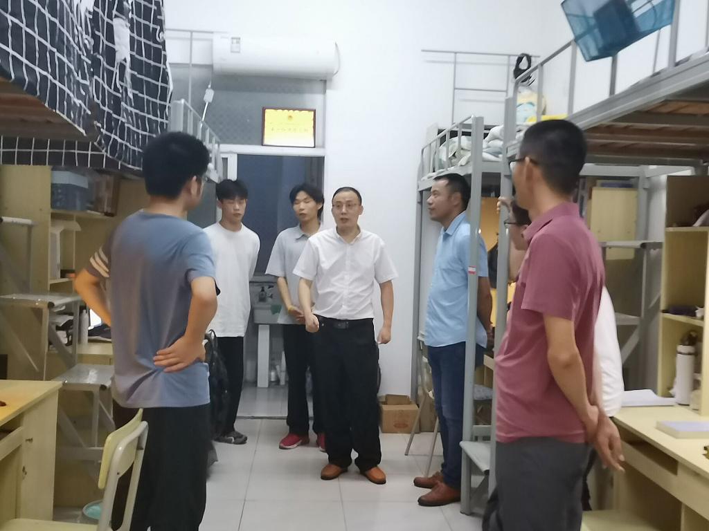 傍晚时分,陈付龙书记来到学生宿舍,了解同学们的学习及生活情况,并就同学们的宿舍文化、环境以及对学校的建议等,轻松愉快地进行着交流。在走访过程中同学们也反映一些关于寝室和生活方面存在的问题,陈书记一一记录下来,并表示将这些问题交办职能部门处理。