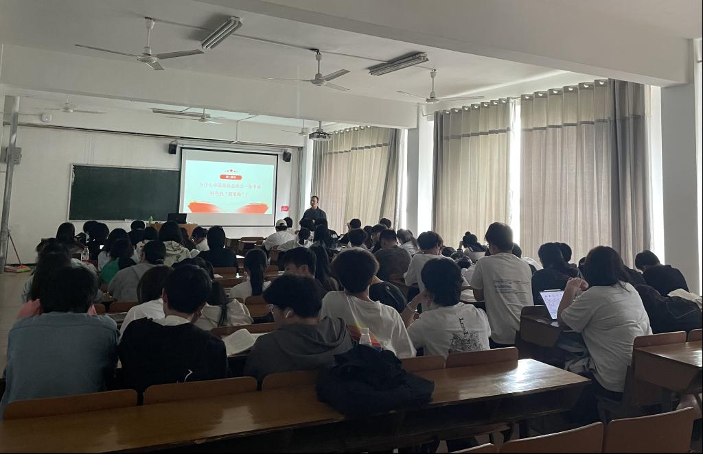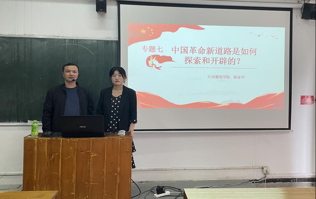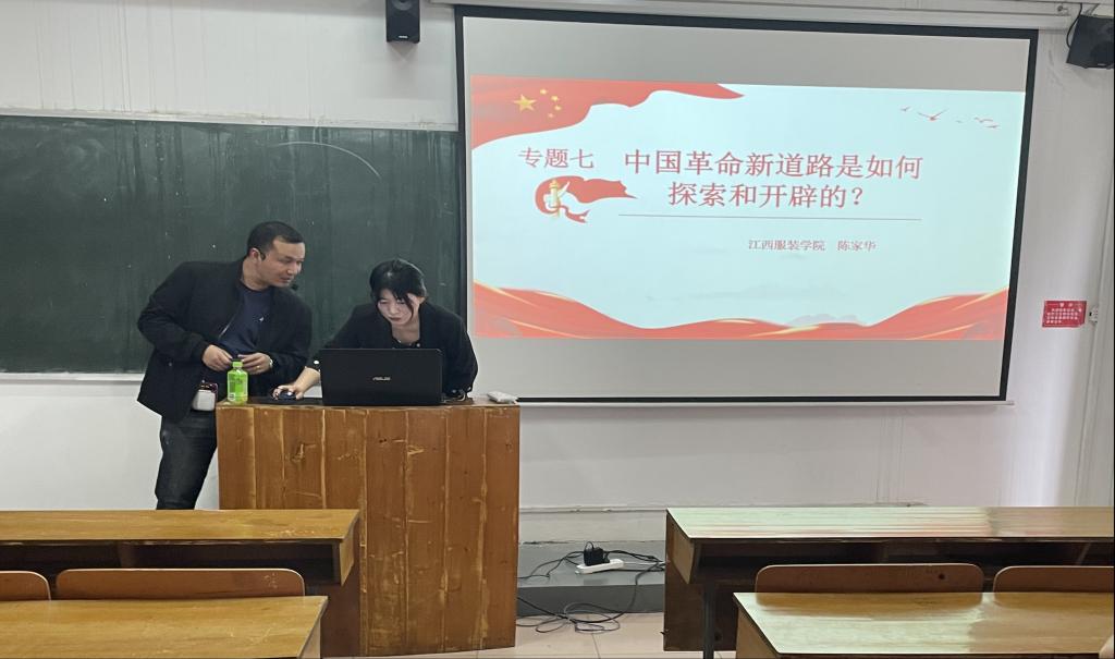 2023年5月10日,在“中国革命新道路是怎样探索和开辟的”这一专题教学中,马克思主义学院王敏老师向同学们讲清楚这一专题的教学目的与要求,从理论逻辑与实践逻辑上向同学们讲述清楚“认识国民党政权的阶级性质,认识探索中国革命新道路的曲折发展历程,以及革命新道路理论的形成,以及认识“农村包围城市,武装夺取政权”的这一革命新道路理论是中国共产党集体智慧的结晶,是马克思列宁主义的基本理论与中国革命具体实际相结合的典范。”等内容;人文学院陈家华老师则从“中国为什么必须继续革命、马克思主义为什么必须中国化、中国革命的道路为什么必须从农村开始、为什么必须弘扬井冈山精神”等四个方面通过生动的讲述和鲜活的案例向同学们进行讲述。