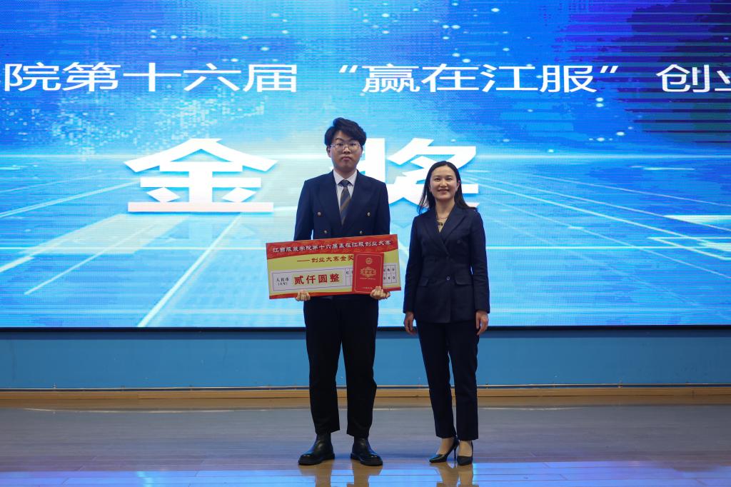 第十六届“赢在江服”创业大赛总决赛项目经过院级初赛、校级复赛的层层选拔,最终10个项目团队成功站上了决赛的舞台,评委会根据参赛选手现场项目路演情况进行评审并打分,最终评选出金奖1名,银奖2名,铜奖3名,优秀指导老师奖3名,优秀组织奖1名。同时,这10支团队也将入驻学校创业街区项目孵化基地进行项目孵化,在孵化基地运行比较好的项目,学校会支持进入创业街区的商业项目街区进行市场化运营,通过层级式助推大学生开展创新创业实践活动。