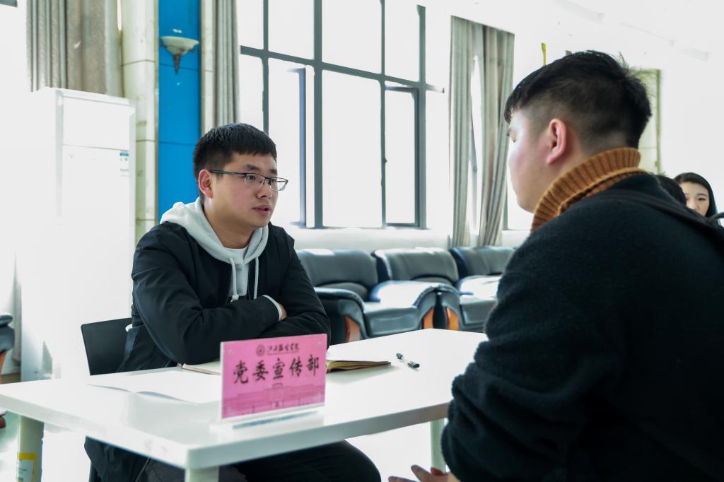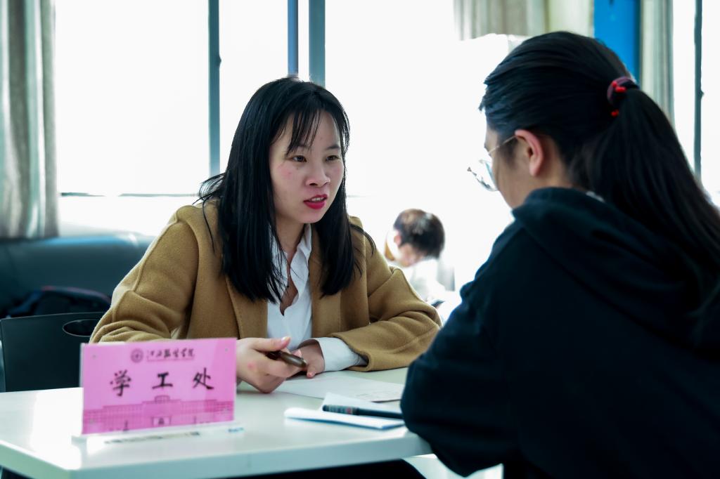 新闻中心讯 3月8日下午,我校在思贤楼二楼大厅举办2022年春季学期校内勤工助学招聘活动,学校提供勤工助学岗位的用人部门到场参与现场招聘,校党委副书记唐新强莅临招聘现场,招聘活动吸引了百余名学生参加,招聘会由学生资助管理中心主任余晓萍主持。