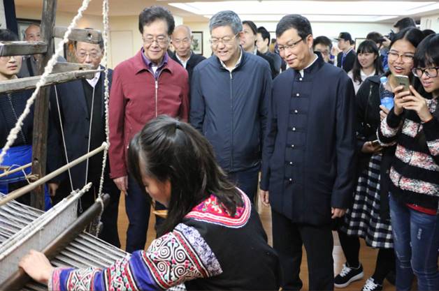 我校的民族团结进步创建工作得到省民族宗教事务局领导的认可和有关部门的大力支持。2017年12月8日,省委统战部副部长,省民族宗教事务局党组书记、局长曹国庆带领省市县民宗部门负责人专程到我校实地调研民族服装博物馆,听取汇报,充分肯定了学校的工作成绩和特色模式。