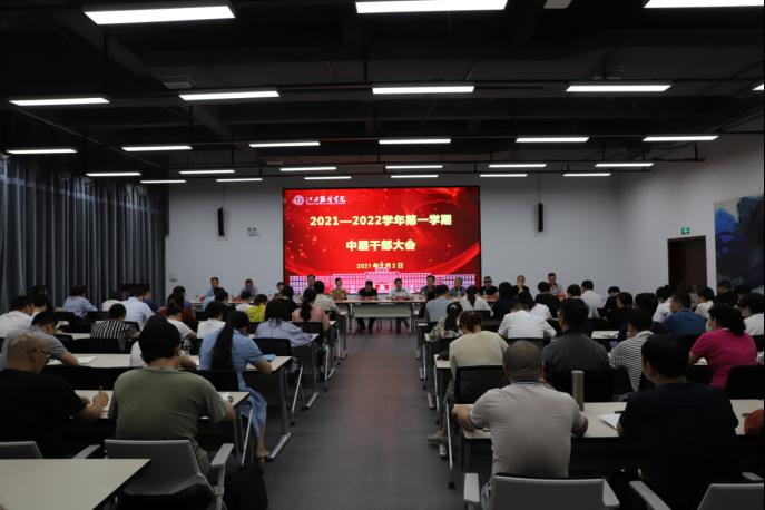 【新闻中心讯】9月2日,我校2021-2022学年第一学期中层干部大会在图书馆三楼报告厅隆重举行。理事长涂顺强、校长薛家宝、副理事长涂燕萍及校领导班子出席会议,全校中层干部参加了会议。会议由常务副校长徐炜主持。