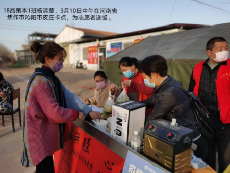 志愿者们的行为看起来微不足道,但百川汇成海,每一位志愿者的奉献都是在和疫情作斗争,每一位志愿者都是守卫防疫长城的一块砖头,少了任何一块都会让病毒有可趁之机,江服因为这些青春亮丽的学子而骄傲,而自豪。19编导本科1班孙舶源同学说,作为一名大一学生,虽然我不能像志愿者一样前往“战场”,但是我也想为国家为社会做出一点贡献。所以我前往防疫点为志愿者送上自己的一点点心意。我们坚信,随着群防群控严密防线的建立和完善,在大家的共同努力下,我们定能战胜疫情!