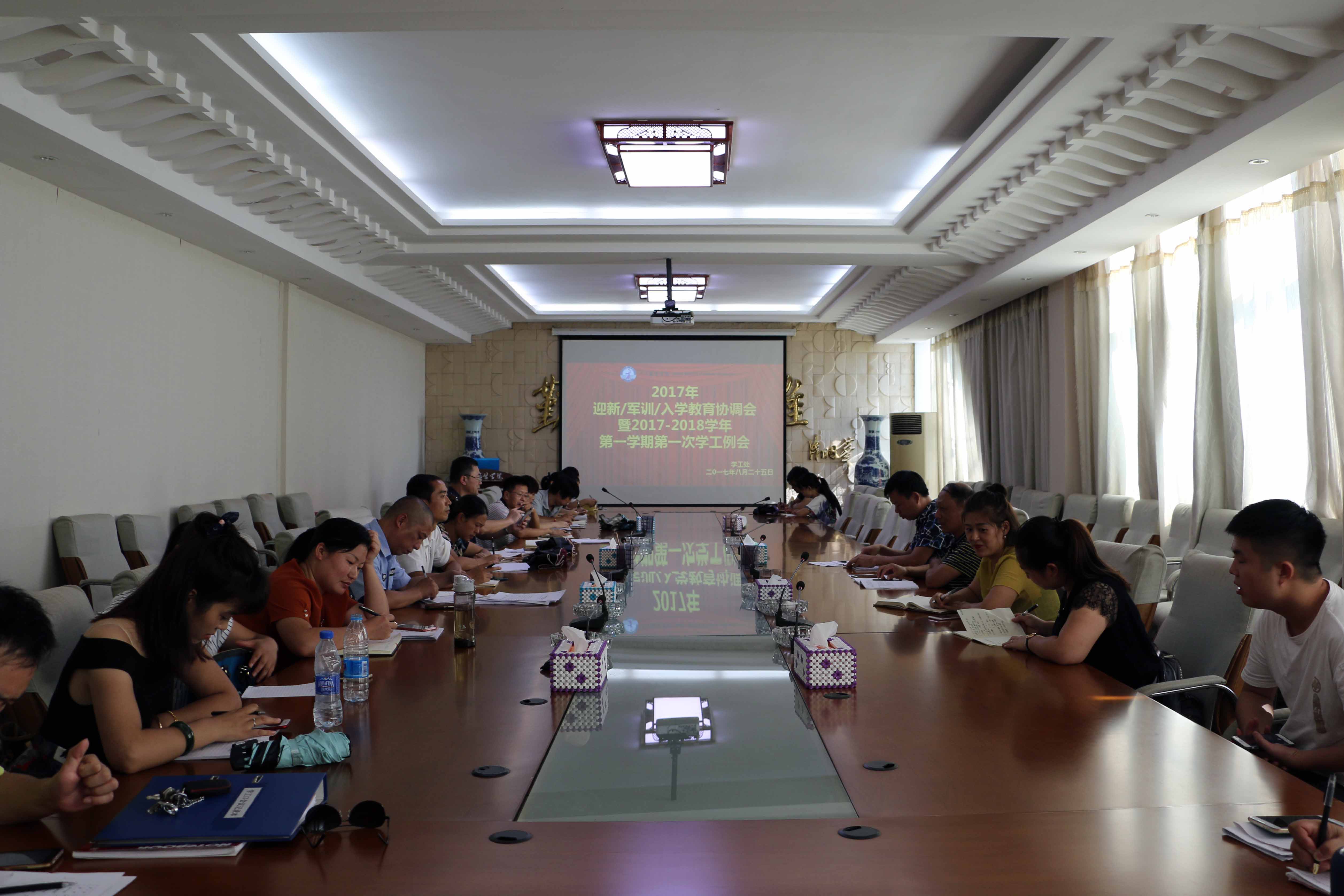 金秋送爽,又到一年收获季,随着我校录取工作的结束,我校将喜迎来自全国各地的4000余名学子。为切实做好2017年迎新、军训和入学教育工作及老生返校工作,8月25日下午,校学工处组织召开专门会议,布置相关工作。会议由党委副书记高建国主持,校学工处、保卫处、校团委、武装部、宣传、后勤及各学院主管学生工作领导参加了会议。