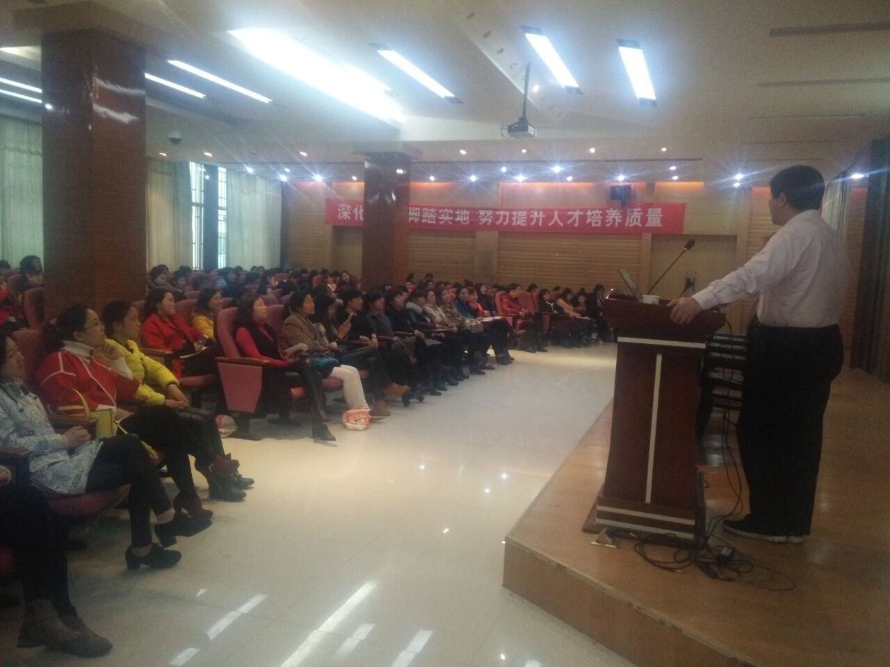 服装报讯(校工会郦文贞供稿)为纪念国际三八妇女节,3月8日下午,校工会在行政楼报告厅举办了《与美丽同行 关爱乳腺健康》专题讲座。专门邀请了南昌大学第一附属医院著名专家武彪教授给我校女教职工专题传授乳腺保健知识。200余名女教职工和女生听取了讲座。吴教授在讲授中,理论联系实际,列举了大量的乳腺临床病例,指导正确做好乳腺保健以及预防乳腺癌发生。武教授的精彩演讲,赢得了全场女教职工的热烈掌声。