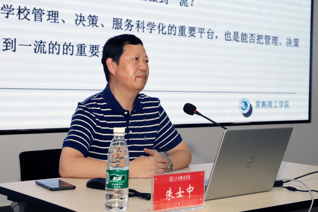薛家宝校长作总结发言指出,朱士中教授结合常熟理工学院信息化建设的实际,全面介绍讲解了高校信息化建设的重要性、建设的目标任务、注意事项等,分享了他多年来积累的宝贵经验。他希望全校中层干部要深刻理解教育信息化的重要意义,要认真学习消化朱士中教授所带来的智慧校园建设的新信息、新思路,进一步提高认识,推动我校信息化建设的进步与发展。