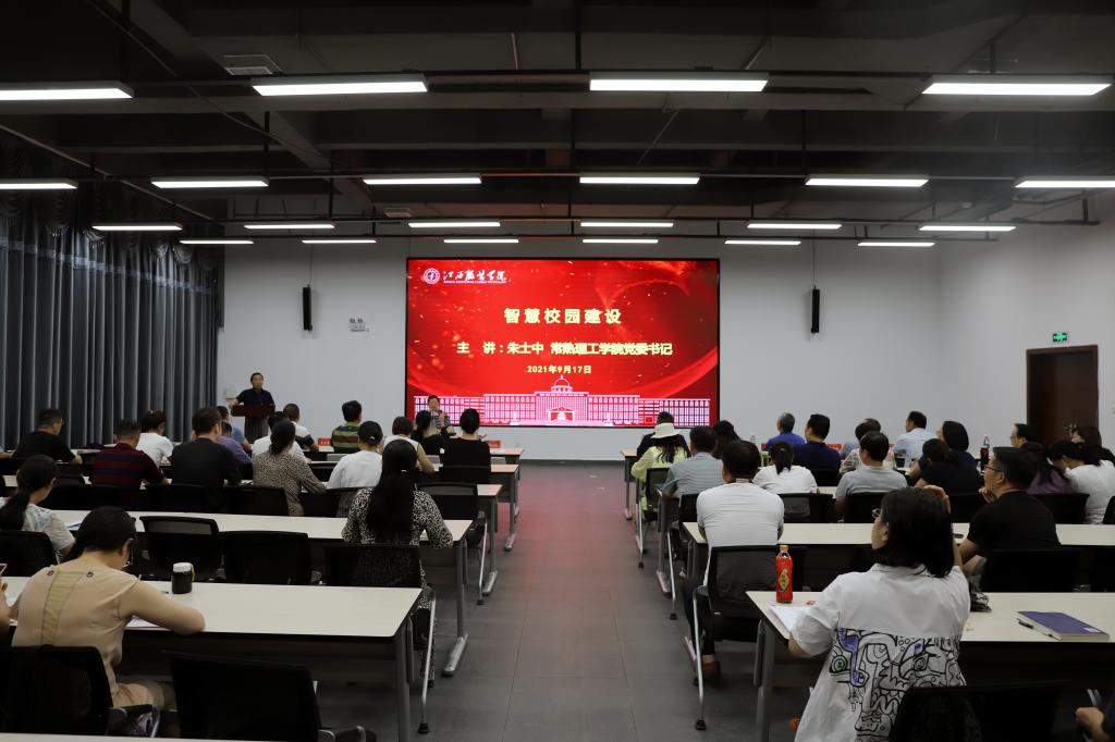 新闻中心讯 9月17日下午,常熟理工学院党委书记朱士中教授应邀来我校作智慧校园建设专题讲座。讲座在图书馆三楼报告厅举行。全体在家校领导、全体中层干部和部分师生代表聆听了讲座。校长薛家宝主持讲座。