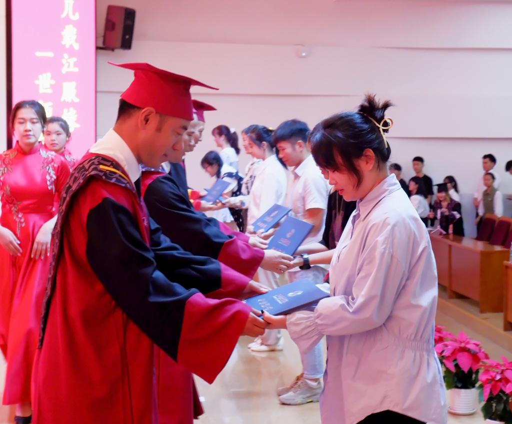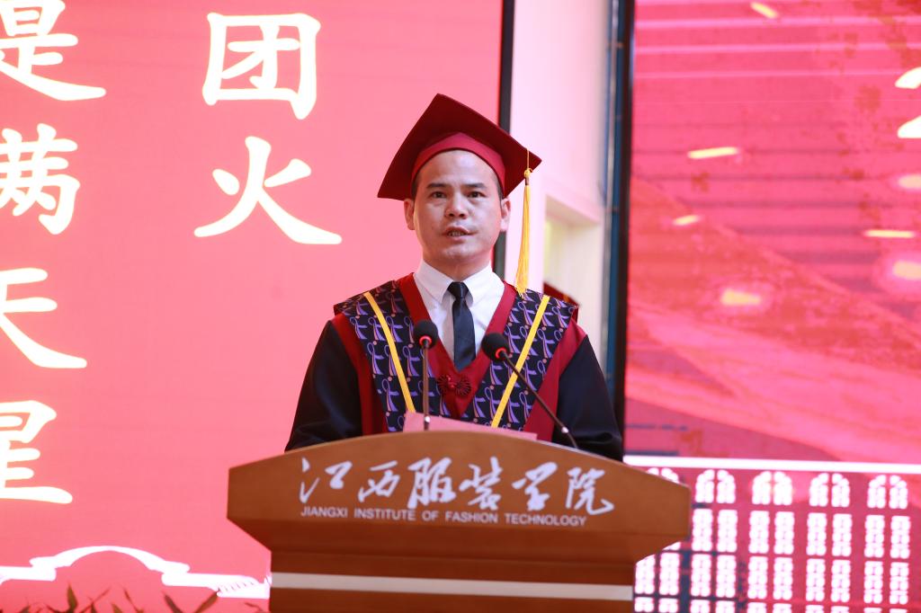 薛家宝勉励同学们,“从今天开始,你们身份将从‘江服学生’转变为‘江服校友’。你们成长了、成熟了,要步入社会去实现人生新的超越,创造人生新的传奇!在离别之际,请你们带上祝福,带上希望,怀着一颗仁爱之心、憧憬之心、勇敢之心,去开创属于自己的精彩未来!”