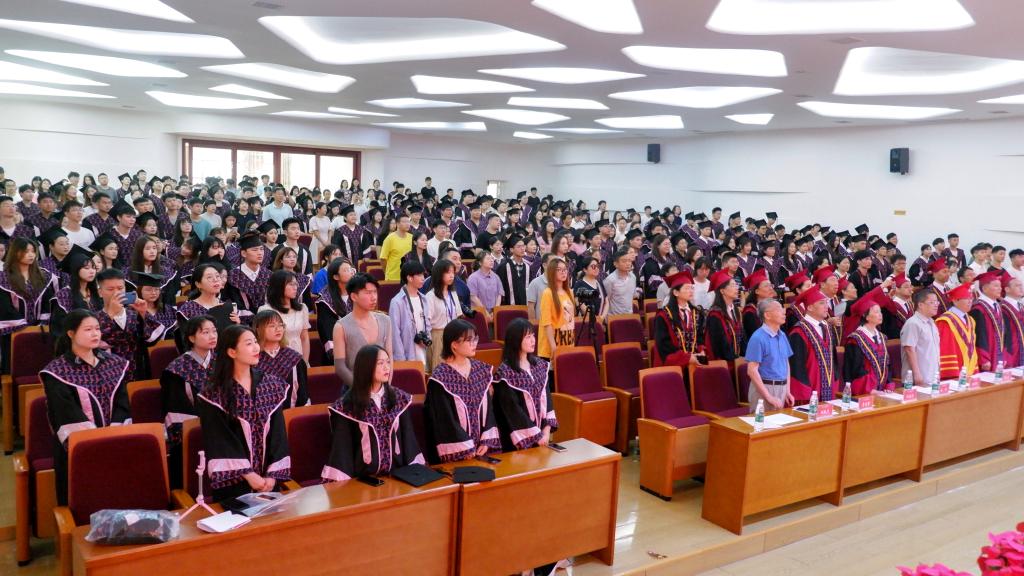 毕业典礼在奋发豪迈的校歌《美丽如梦》声中圆满结束。