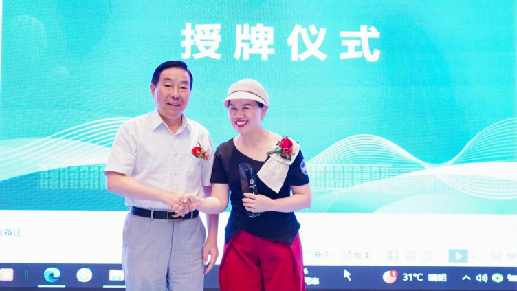 校长薛家宝、副校长李宝君为福建校友会最佳贡献奖颁奖