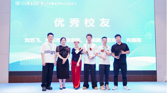 福建校友会会长万寒栗,执行会长何艳丽、钟世琼为福建校友会优秀校友工作者颁奖