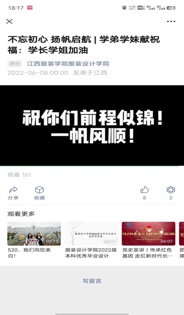 学校积极关注每个毕业生的成长和发展,将毕业生教育作为学生知识学习和人格培育的重要阶段,作为人才培养的重大工程,把每年的4—6月份作为学校的“毕业季”,以校园文化活动为载体,大力开展毕业季系列教育活动。各学院毕业季系列活动的成功举办为毕业生们营造了一个温暖的毕业氛围,相信同学们将带着母校诚挚的祝福和希望,满怀信心和勇气,勇敢踏上逐梦的征程。青春不散场,亦不诉离殇,愿2022届毕业生带着在江服许下的誓言,整装再出发,乘上幸福号列车驶向更美好的未来!